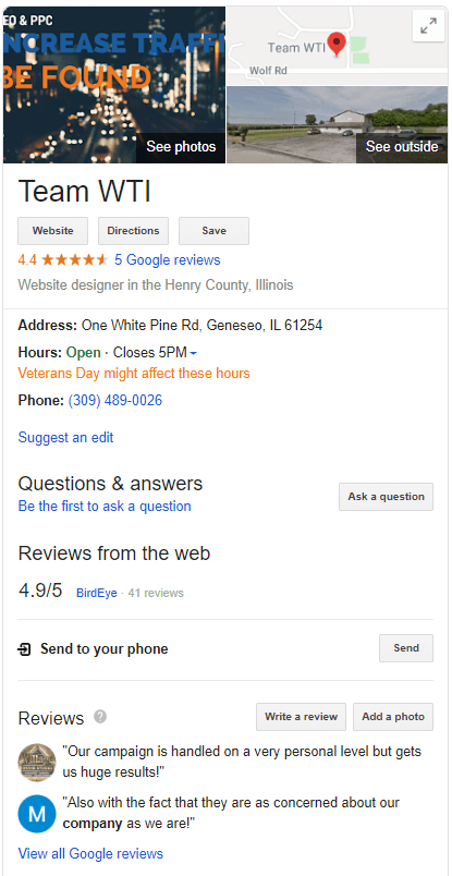 If you take advantage of our social media services, we are also able to tackle any issues at the forefront of social media and broadcast your good reviews as they come in. If you’d like to learn more about how Team WTI can help manage your online reputation, give us a call.